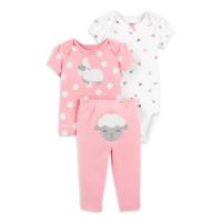 New styles, same great value. Fresh looks you’ll love made with the quality you trust from Carter’s. This sweet 3-piece set from Child Of Mine by Carter's is a perfect(ly adorable!) on-the-go outfit for your little one. A coordinating soft cotton top and bodysuit (both with overlap shoulders for easy over the head!) pair up with matching pull-on pants that have a sweet character appliqué on the behind for two complete, super cute outfits. Wear one + toss the other in your diaper bag! Psst… this little set makes a great gift, too.