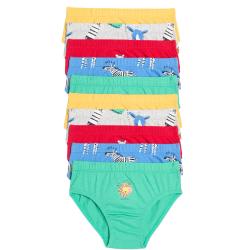 Featuring a whole safari of friendly animals, this handy 10-pack of kids briefs will bring fun and comfort to everyday dressing. Colourful zebras, crocs, and lions brighten up each pure cotton pair.