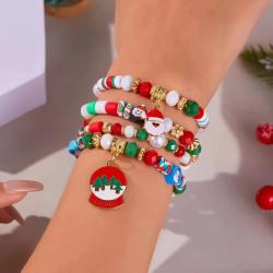 Little Town 4-Piece Christmas Bracelets Set-Multicolor - Happy Green Tree (NO RETURN OR EXCHANGE ON THIS PRODUCT)
