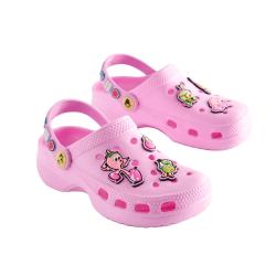 Perfect for kids, these lightweight, fun pink clogs have a breathable perforated upper with a secure heel strap, decorated with all-over character badges and a chunky sole unit with great cushioning.